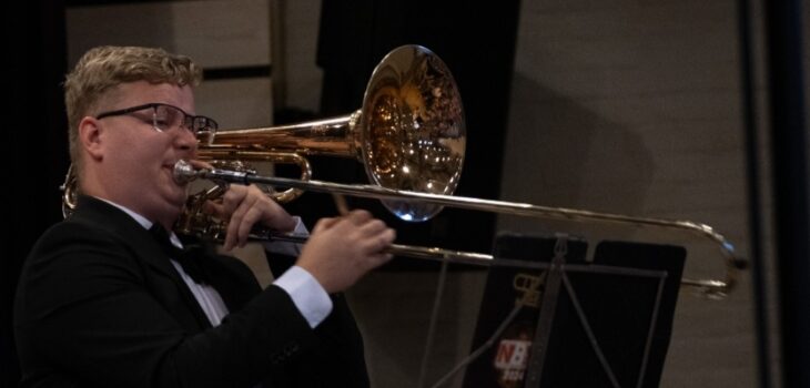 Op dit moment studeert hij Bastrombone aan het Prins Claus Conservatorium.